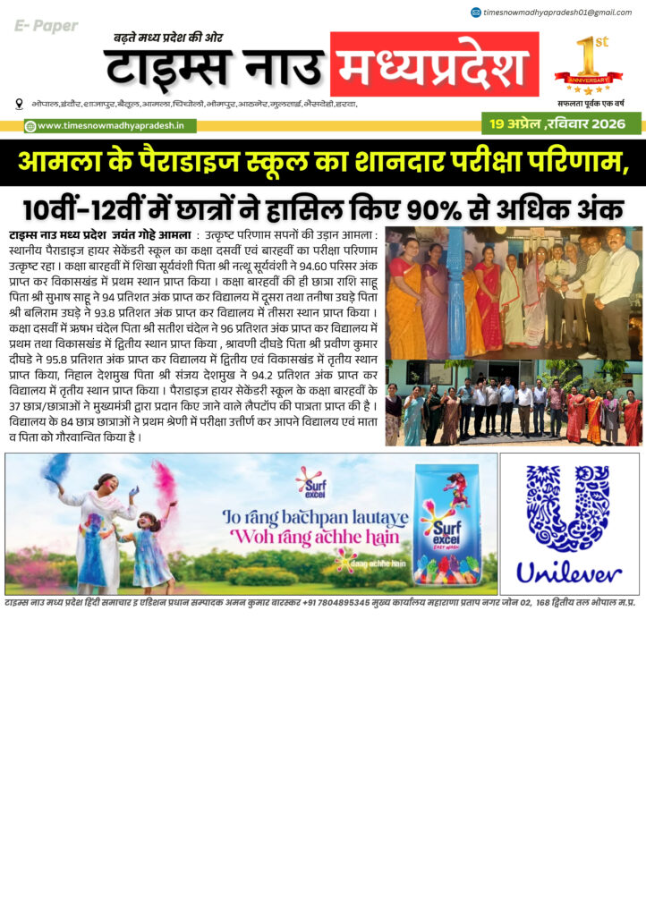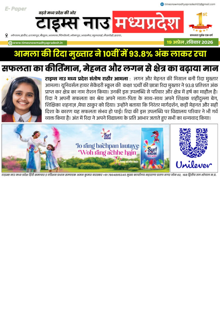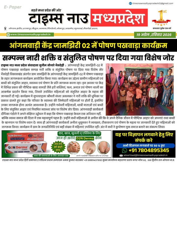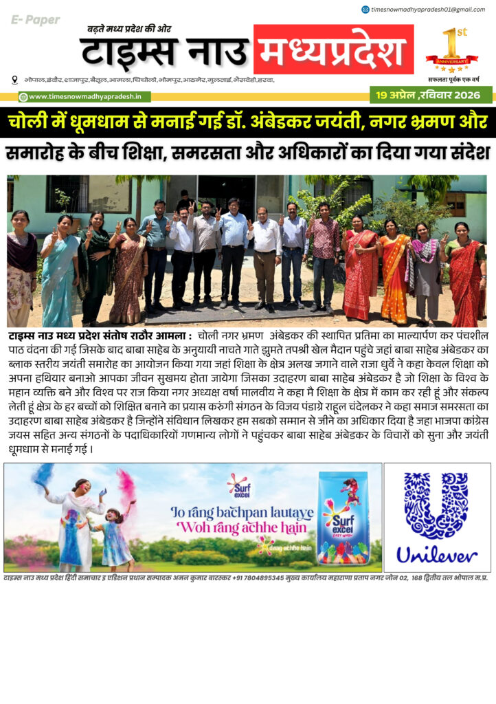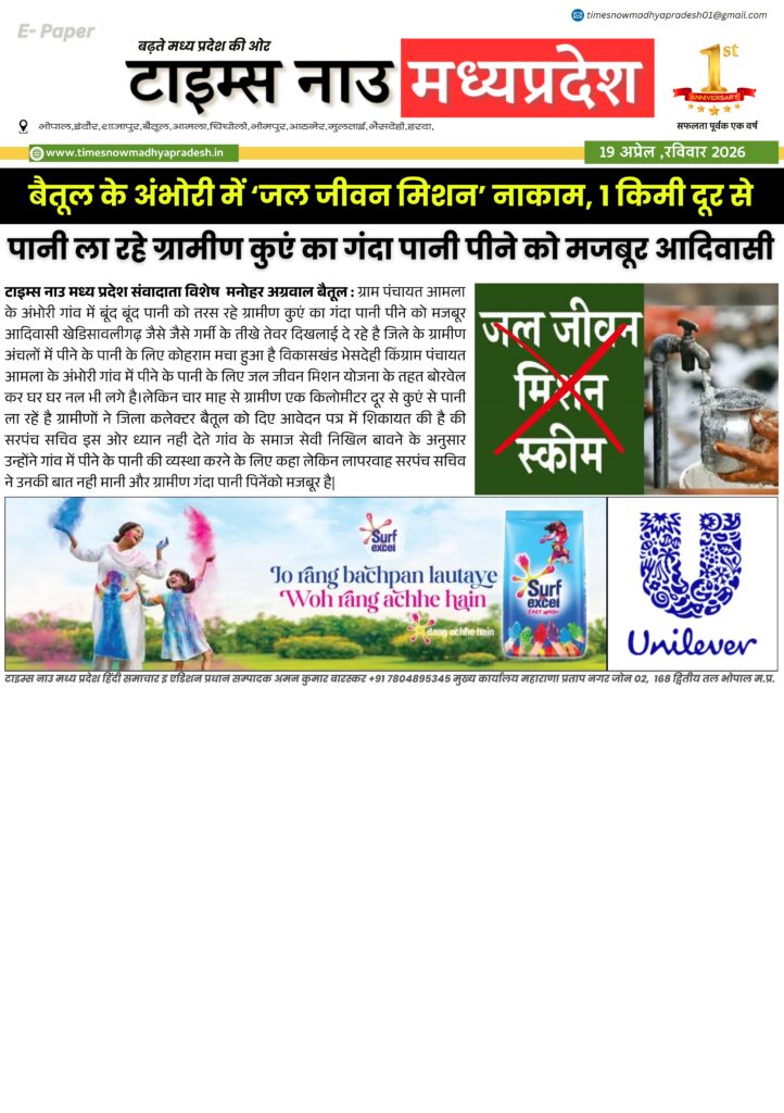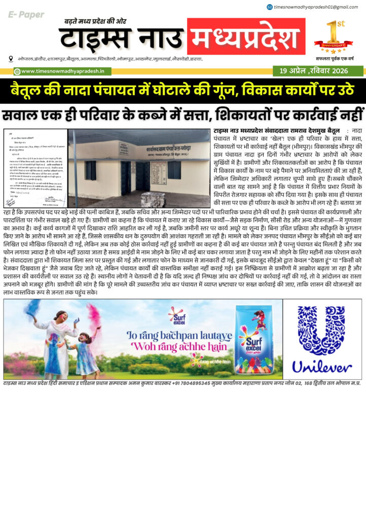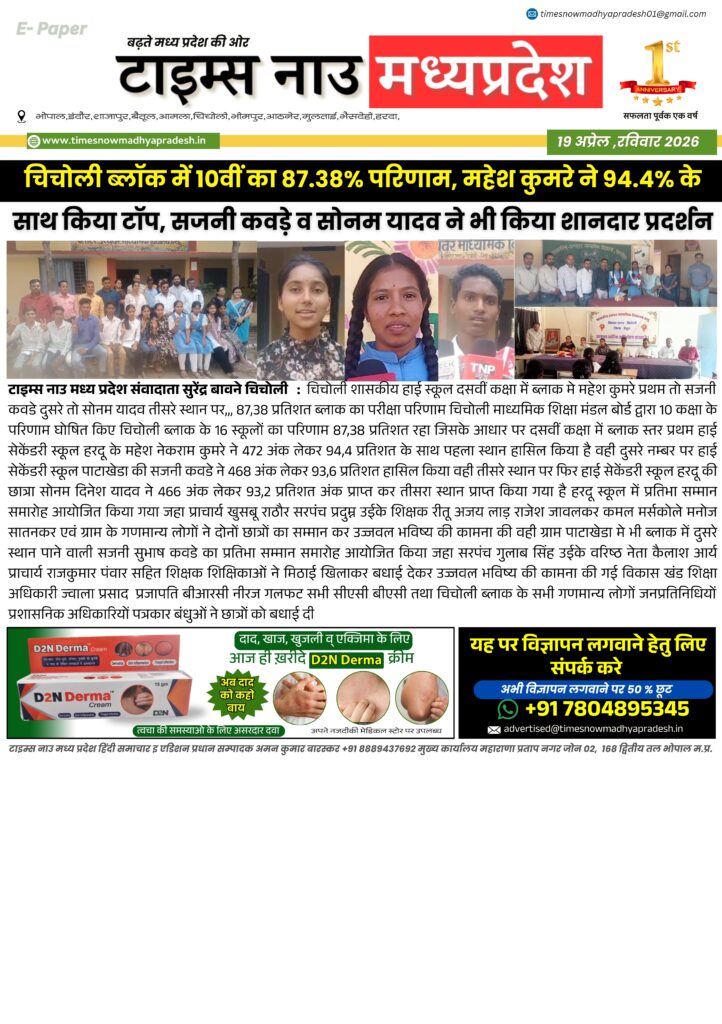 E - Paper बैतूल आसपास बैतूल : आज की ताजा खबर बैतूल आसपास timesnowmadhyapradesh02@gmail.com April 19, 2026 About the Author timesnowmadhyapradesh02@gmail.com Administrator Visit Website View All Posts Continue Reading Previous: बैतूल : आज की ताजा खबर बैतूल आसपास Leave a Reply Cancel replyYour email address will not be published. Required fields are marked *Comment * Name * Email * Website Save my name, email, and website in this browser for the next time I comment. Related Stories E - Paper बैतूल आसपास बैतूल : आज की ताजा खबर बैतूल आसपास timesnowmadhyapradesh02@gmail.com April 16, 2026 E - Paper बैतूल : आज की ताजा खबर बैतूल आसपास timesnowmadhyapradesh02@gmail.com April 15, 2026 E - Paper मध्यप्रदेश 14 अप्रैल जन्मजयंती पर विशेष 21 वीं सदी के भारत में बाबा साहब के विचारों की प्रासंगिकता। timesnowmadhyapradesh02@gmail.com April 14, 2026