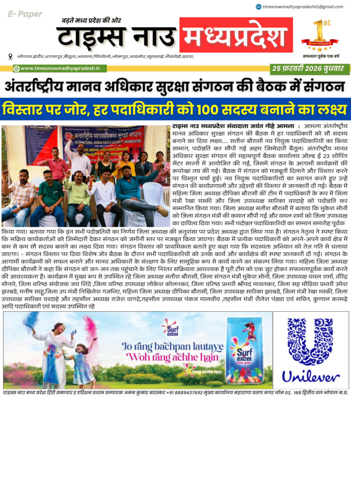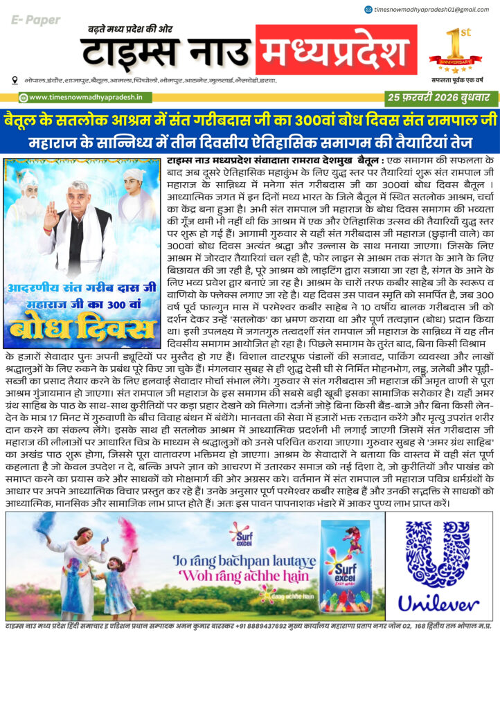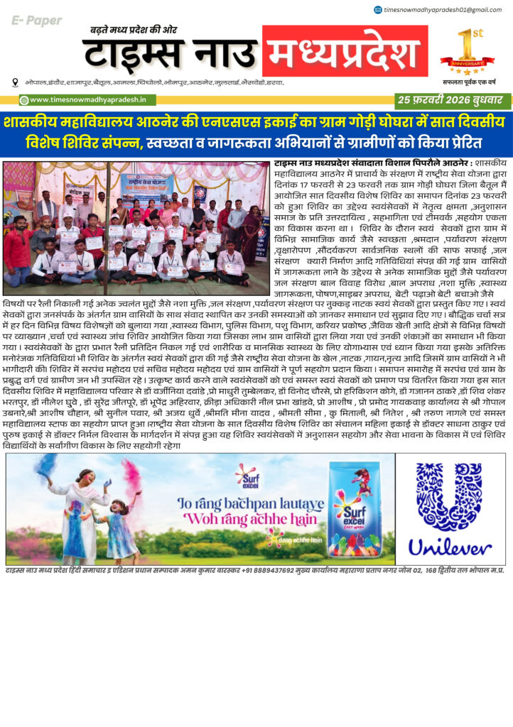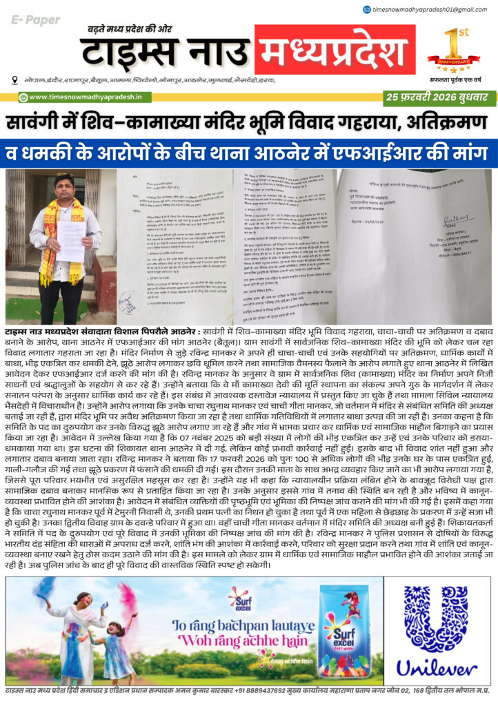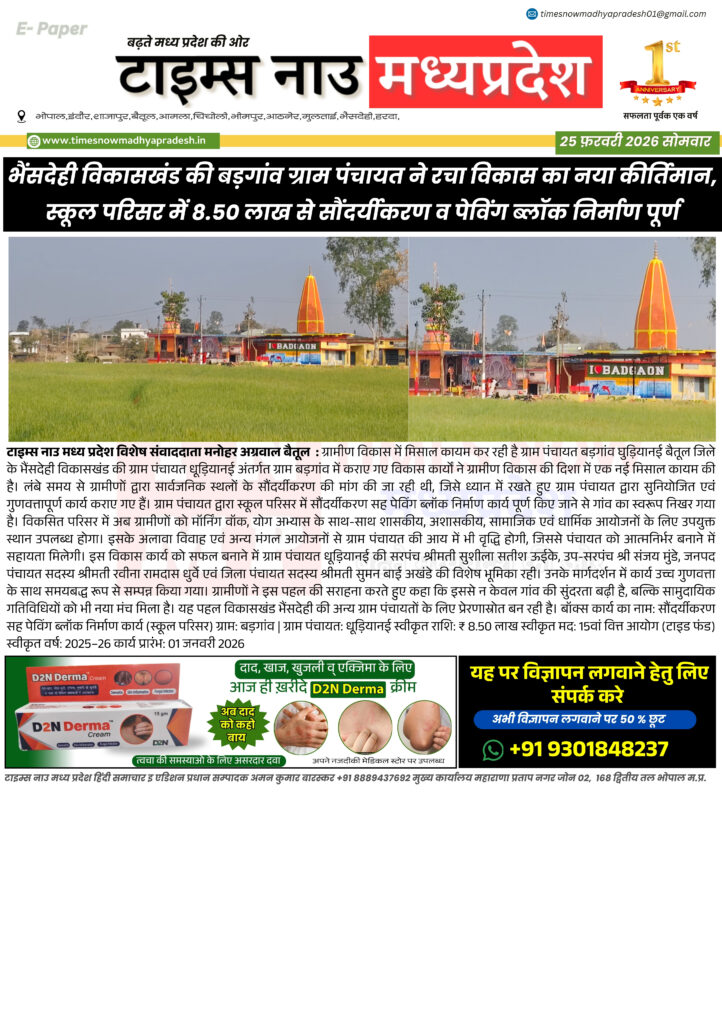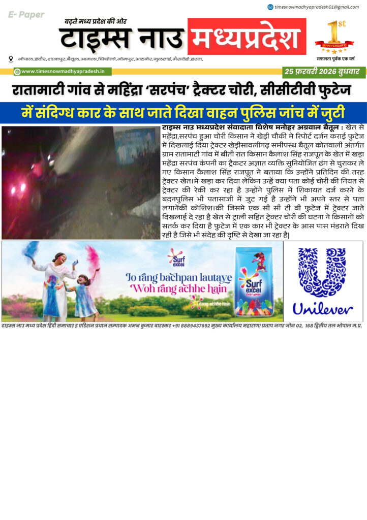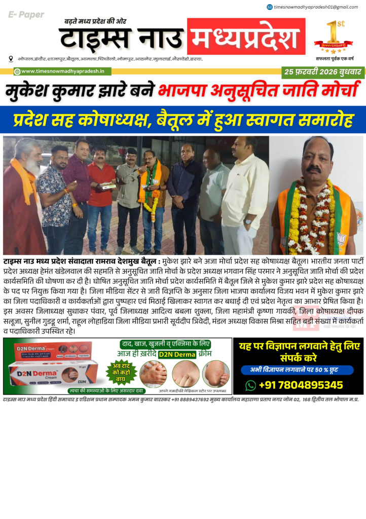 E - Paper बैतूल : आज की ताजा खबर बैतूल आसपास timesnowmadhyapradesh02@gmail.com February 25, 2026 About the Author timesnowmadhyapradesh02@gmail.com Administrator Visit Website View All Posts Continue Reading Previous: बैतूल : आज की ताजा खबर बैतूल आसपासNext: बैतूल : आज की ताजा खबर बैतूल आसपास Leave a Reply Cancel replyYour email address will not be published. Required fields are marked *Comment * Name * Email * Website Save my name, email, and website in this browser for the next time I comment. Related Stories E - Paper बैतूल आसपास बैतूल : आज की ताजा खबर बैतूल आसपास timesnowmadhyapradesh02@gmail.com April 16, 2026 E - Paper बैतूल : आज की ताजा खबर बैतूल आसपास timesnowmadhyapradesh02@gmail.com April 15, 2026 E - Paper मध्यप्रदेश 14 अप्रैल जन्मजयंती पर विशेष 21 वीं सदी के भारत में बाबा साहब के विचारों की प्रासंगिकता। timesnowmadhyapradesh02@gmail.com April 14, 2026