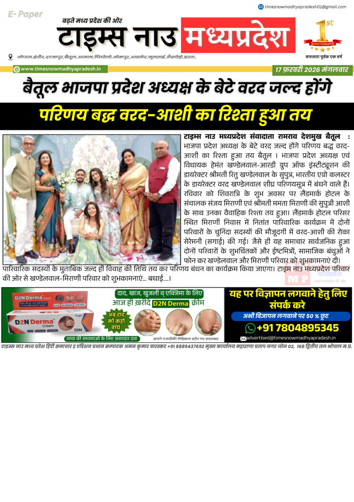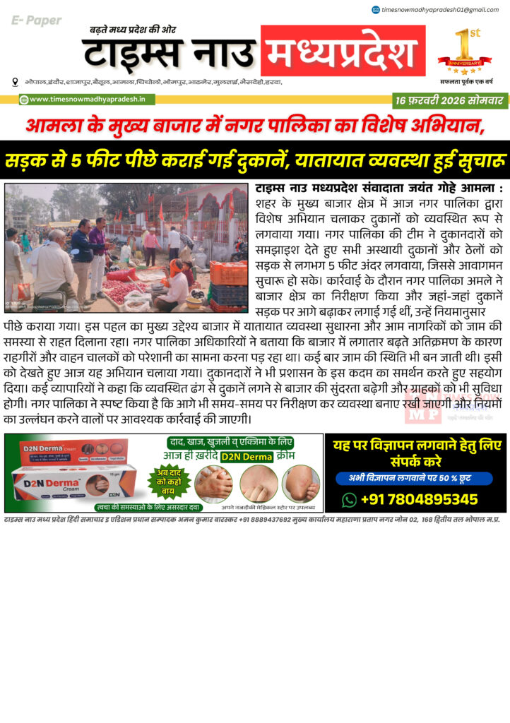 E - Paper बैतूल : आज की ताजा खबर बैतूल आसपास timesnowmadhyapradesh02@gmail.com February 17, 2026 About the Author timesnowmadhyapradesh02@gmail.com Administrator Visit Website View All Posts Continue Reading Previous: मध्य प्रदेश विधानसभा का बजट सत्र शुरू, राज्यपाल के अभिभाषण से हुई कार्यवाही की शुरुआतNext: बैतूल : आज की ताजा खबर बैतूल आसपास Leave a Reply Cancel replyYour email address will not be published. Required fields are marked *Comment * Name * Email * Website Save my name, email, and website in this browser for the next time I comment. Related Stories E - Paper बैतूल : आज की ताजा खबर बैतूल आसपास timesnowmadhyapradesh02@gmail.com February 21, 2026 E - Paper बैतूल आसपास आज की ताजा खबरे timesnowmadhyapradesh02@gmail.com February 8, 2026 E - Paper बैतूल आसपास बैतूल : आज की ताजा खबर बैतूल आसपास timesnowmadhyapradesh02@gmail.com February 5, 2026