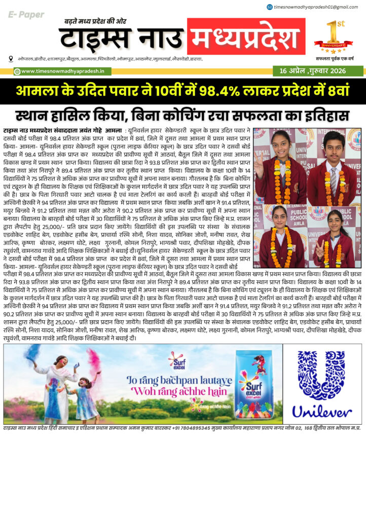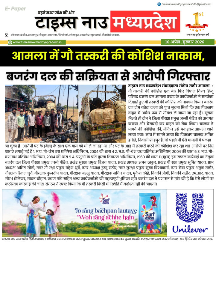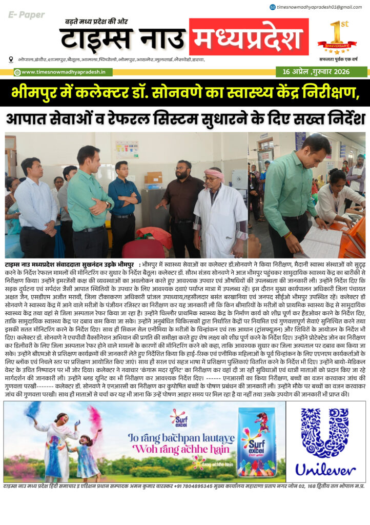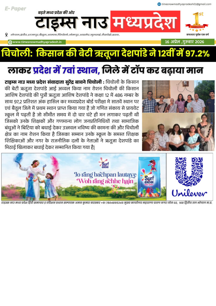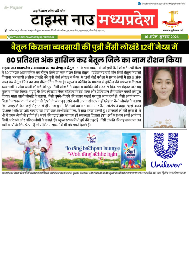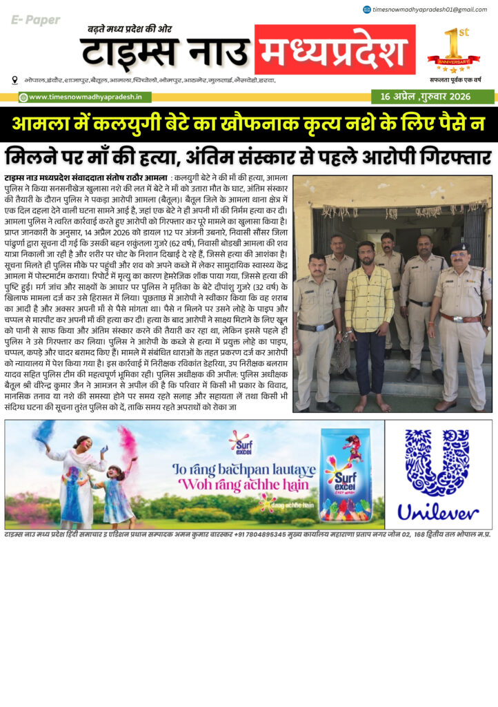 E - Paper बैतूल आसपास बैतूल : आज की ताजा खबर बैतूल आसपास timesnowmadhyapradesh02@gmail.com April 16, 2026 About the Author timesnowmadhyapradesh02@gmail.com Administrator Visit Website View All Posts Continue Reading Previous: बैतूल : आज की ताजा खबर बैतूल आसपास Leave a Reply Cancel replyYour email address will not be published. Required fields are marked *Comment * Name * Email * Website Save my name, email, and website in this browser for the next time I comment. Related Stories E - Paper बैतूल : आज की ताजा खबर बैतूल आसपास timesnowmadhyapradesh02@gmail.com April 15, 2026 E - Paper मध्यप्रदेश 14 अप्रैल जन्मजयंती पर विशेष 21 वीं सदी के भारत में बाबा साहब के विचारों की प्रासंगिकता। timesnowmadhyapradesh02@gmail.com April 14, 2026 E - Paper बैतूल आसपास बैतूल : आज की ताजा खबर बैतूल आसपास timesnowmadhyapradesh02@gmail.com April 12, 2026