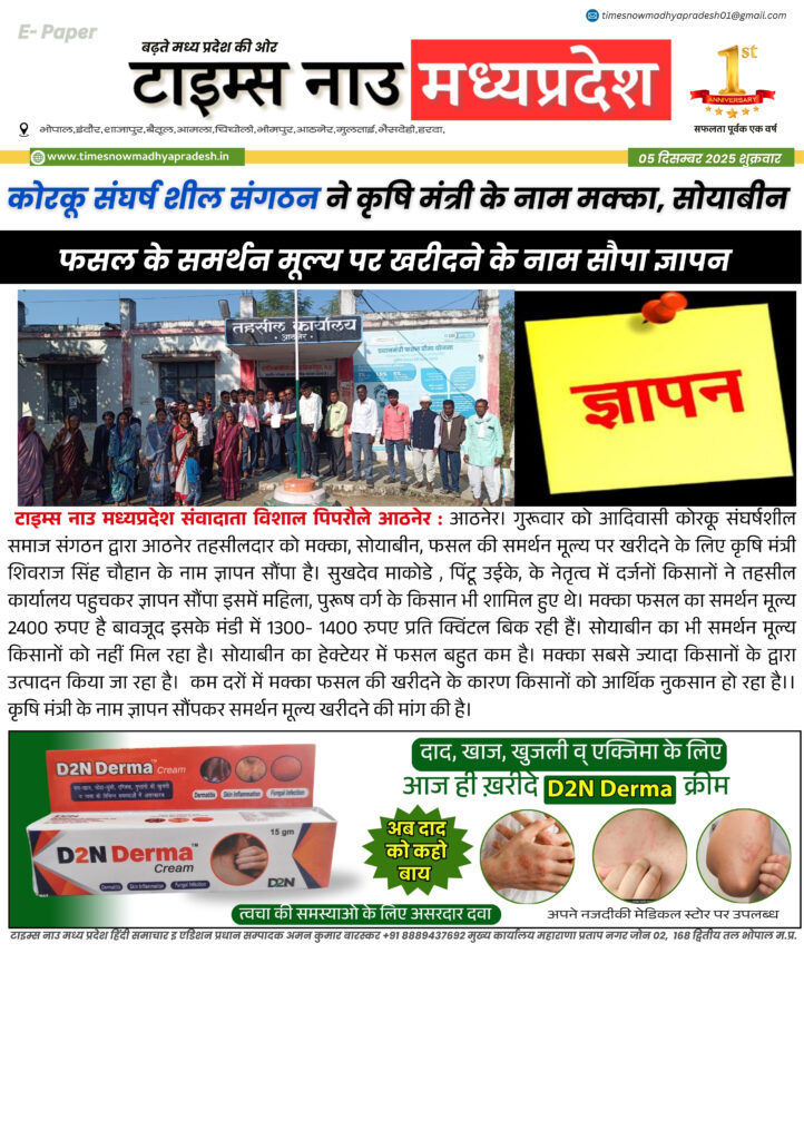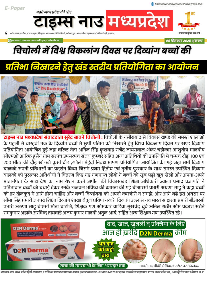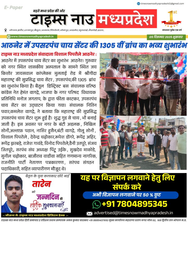 E - Paper आज के मुख्य समाचार बैतूल timesnowmadhyapradesh02@gmail.com December 5, 2025 About the Author timesnowmadhyapradesh02@gmail.com Administrator Visit Website View All Posts Continue Reading Previous: भोपाल मेट्रो दिसंबर में सुभाषनगर से एम्स तक पहला कमर्शियल रन शुरू होने की उम्मीद,PM मोदी कर सकते हैं लोकार्पणNext: शीतकालीन सत्र : सदन में गूंजा घटिया पाइप लाइन और भ्रष्टाचार का मुद्दा, मंत्री विजयवर्गीय ने दी जांच की आश्वस्ति Leave a Reply Cancel replyYour email address will not be published. Required fields are marked *Comment * Name * Email * Website Save my name, email, and website in this browser for the next time I comment. Related Stories E - Paper बैतूल : आज की ताजा खबर बैतूल आसपास timesnowmadhyapradesh02@gmail.com February 21, 2026 E - Paper बैतूल : आज की ताजा खबर बैतूल आसपास timesnowmadhyapradesh02@gmail.com February 17, 2026 E - Paper बैतूल आसपास आज की ताजा खबरे timesnowmadhyapradesh02@gmail.com February 8, 2026
